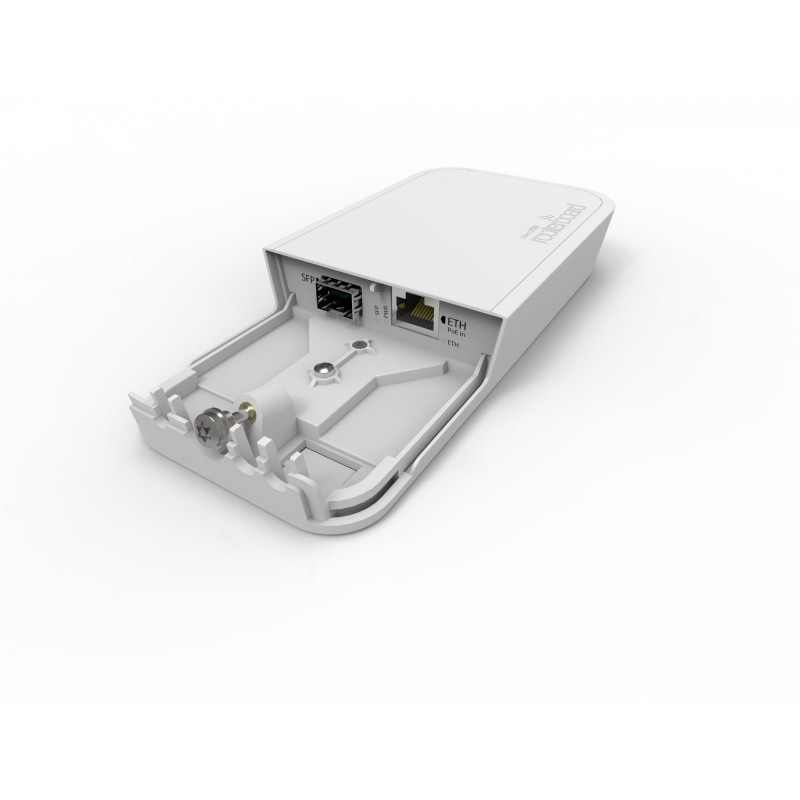 "Mikrotik FTC. Networking standards: IEEE 802.3af, Ethernet interface type: Gigabit Ethernet, Ethernet LAN data rates: 10,100,1000 Mbit/s. Product colour: White. Fiber optic connector: SFP, Connectivity technology: Wired. Width: 185 mm, Depth: 85 mm, Height: 30 mm"\n"The FTC is a simple Fiber to Copper converter. Unlike many other media converters available on market, it has outdoor waterproof case with lock screw, it's mounting bracket can be attached and locked with a screw from inside the case. Unit has 12-57V PoE with 802.3af/at support. Comes with PoE injector and power supply. Works only with Gigabit SFP connections."