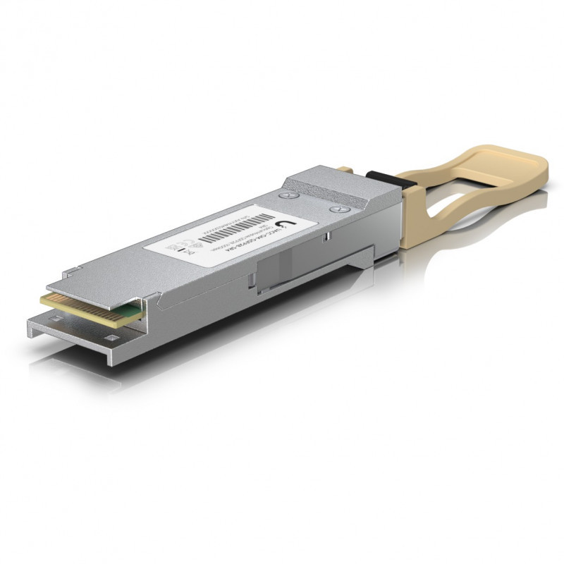 "Ubiquiti UACC-OM-QSFP28-SR4. SFP transceiver type: Fiber optic, Maximum data transfer rate: 100000 Mbit/s, Interface type: QSFP28 / QSFP+. Product colour: Beige, Grey, Form factor: QSFP28"\n"QSFP28 transceiver that supports 100G connections up to 100 m using multi-mode fiber with an MPO-12 Type B UPC connector."