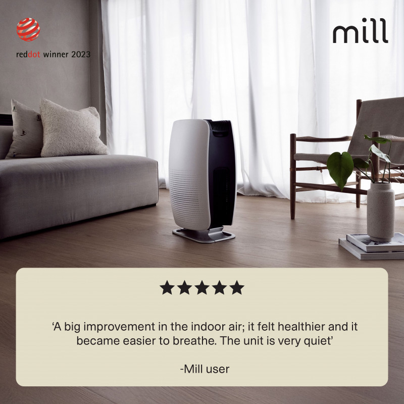 Mill Silent Pro Air Purifier cleans the indoor air in less than 10 minutes (room size <40m2), and effectively removes 99.97% of all harmful particles and gases. |