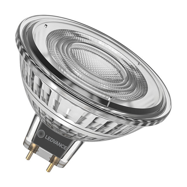 "LEDVANCE 4099854456152. Bulb power: 4.9 W, Equivalent bulb power: 43 W, Fitting/cap type: GU5.3, Luminous flux: 500 lm, Bulb lifetime: 40000 h, Light colour: Warm white, Colour temperature: 2700 K, Beam angle (max): 36°, Color Rendering Index (CRI): 97, Power factor: 0.5"\n
