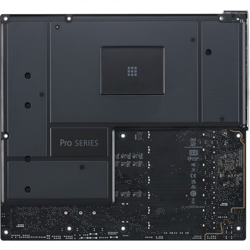 With metallic black aluminum extrusions, stainless steel black mesh with highlighted details, and a transparent smoky gray I/O cover, Pro WS W790 series presents a professional, low-profile look for content creators.