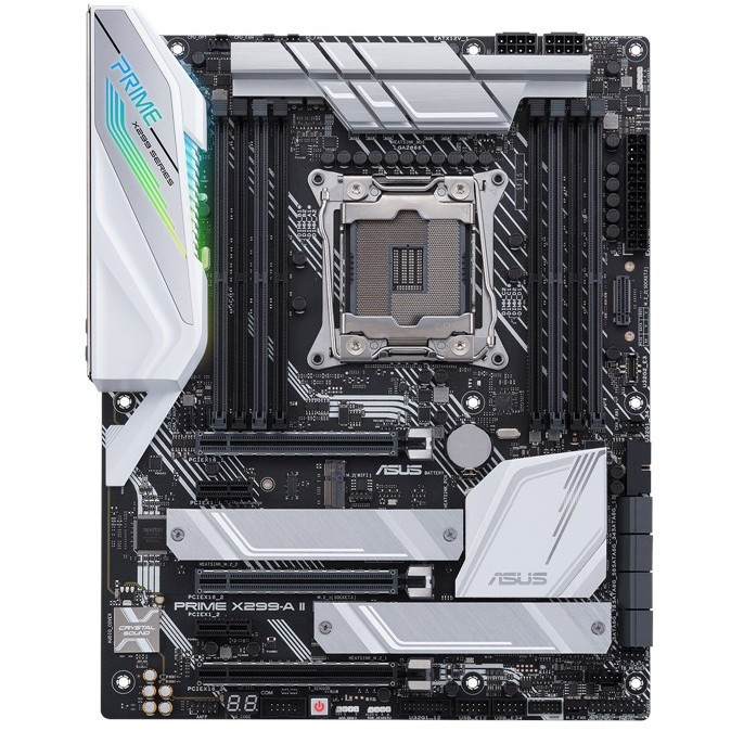 "ASUS Prime X299-A II. Processor manufacturer: Intel, Processor socket: LGA 2066 (Socket R4), Compatible processor series: Intel® Core™ X-series. Supported memory types: DDR4-SDRAM, Maximum internal memory: 256 GB, Memory slots type: DIMM. Supported storage drive interfaces: M.2, SATA III, Supported storage drive types: HDD & SSD, RAID levels: 0, 1, 5, 10. Parallel processing technology support: 2-Way SLI, 3-Way CrossFireX, 3-Way SLI, Quad-GPU CrossFireX, Quad-GPU SLI. Ethernet interface type: Gigabit Ethernet, LAN controller: Intel® I219-V"\n"The Prime X299-A II caters to users with serious pursuits: Those who prefer to put their high-core-count processors to more productive use. This high-end desktop board combines cutting-edge performance with our signature features, including an enhanced VRM tailored for running the CPU performance at stock speeds, intuitive cooling control, next-gen connectivity, and extensive customization.