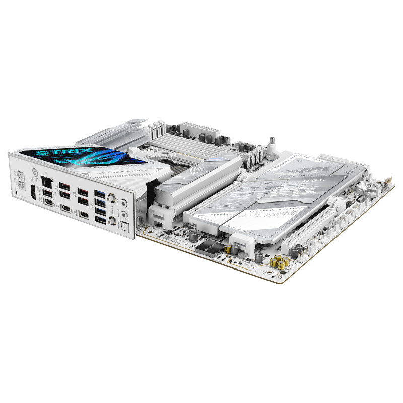 Elevate your build with the ROG Strix X870E-A Gaming WiFi7 Neo, featuring a sleek white aesthetic and a design that maximizes the performance of AMD Ryzen™ 9000 Series processors. PCIe® 5.0, ASUS AI features including AI Cache Boost and ASUS AI Advisor—and exclusive memory technologies such as NitroPath DRAM Technology, DIMM Fit Pro, and AEMP—simplify setup and deliver optimized DDR5 performance. High-speed connectivity is boosted by dual USB4® Type-C ports, WiFi 7, and Realtek® 5G Ethernet, while enhanced M.2 cooling helps ensure stability for demanding workloads. It is the ultimate blend of style and performance."