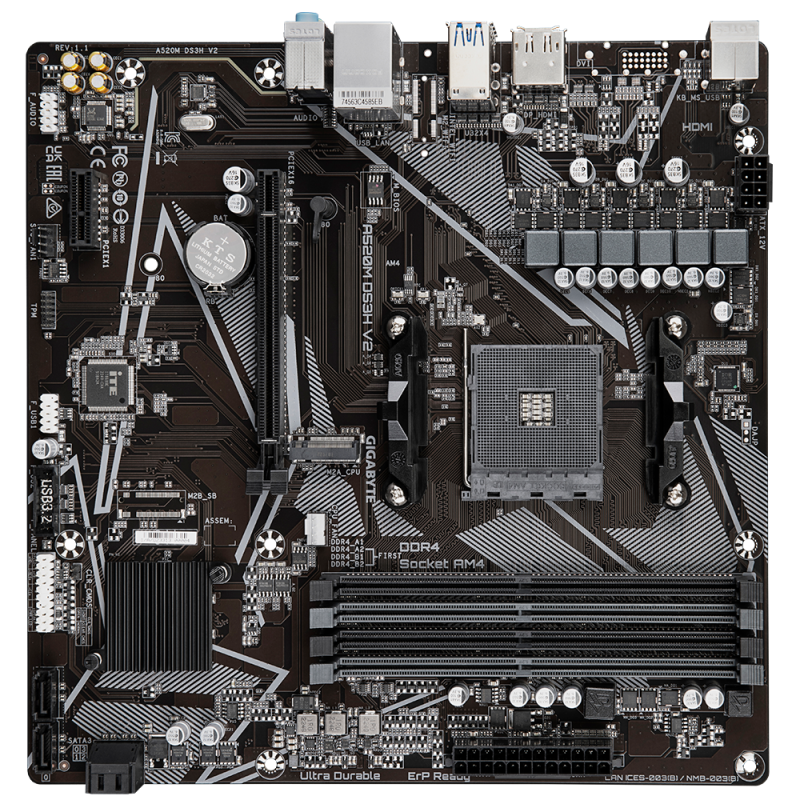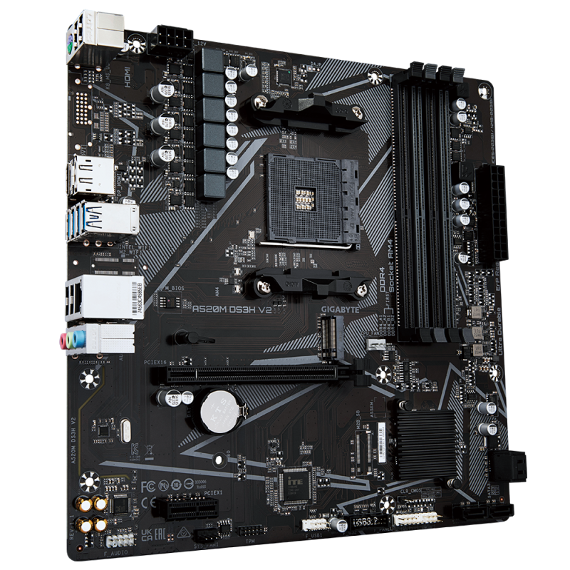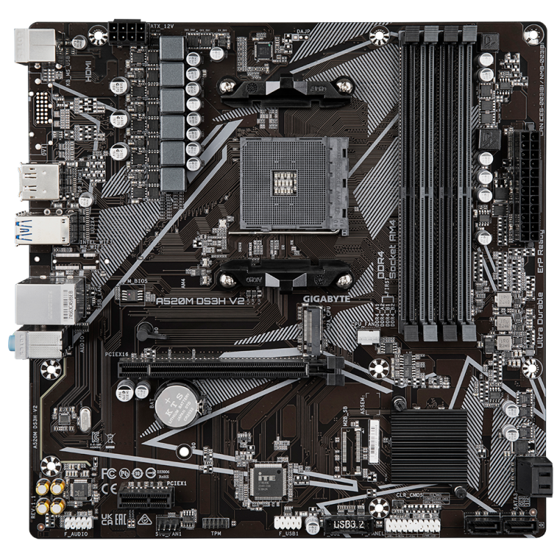 Gigabyte | A520M DS3H V2 | Processor family AMD | Processor socket AM4 | DDR4 DIMM | Memory slots 2 | Number of SATA connectors 4 | Chipset AMD A520 | Micro ATX