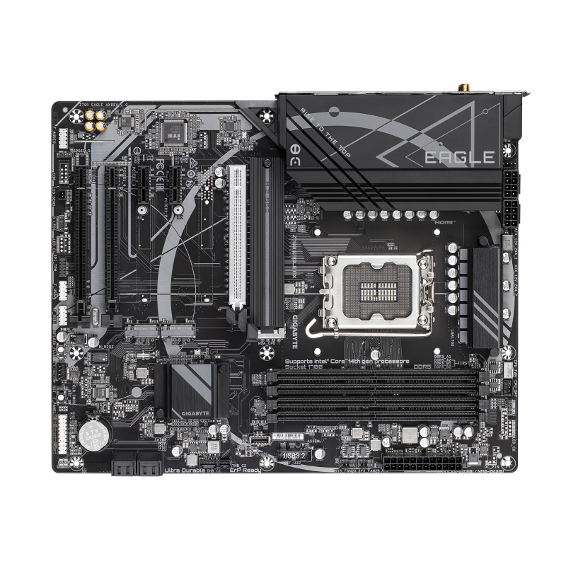 Gigabyte Z790 EAGLE AX | Processor family Intel | Processor socket LGA1700 | DDR5 DIMM | Supported hard disk drive interfaces SATA, M.2 | Number of SATA connectors 4