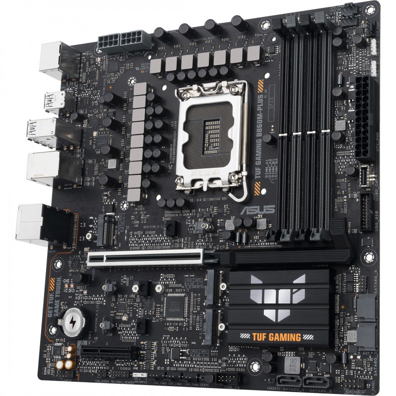ASUS TUF GAMING B860M-PLUS takes all the essential elements of the latest Intel® Core™ Ultra Processors (Series 2) and combines them with game-ready features and proven durability. Engineered with military-grade components, an upgraded power solution and a comprehensive cooling system, this motherboard goes beyond expectations with rock-solid and stable performance for marathon gaming. TUF GAMING motherboards also undergo rigorous endurance testing to ensure that they can handle conditions where others may fail. This platform delivers the power and connectivity that advanced AI PC applications demand."