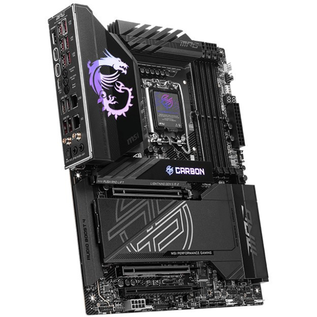 "MSI MPG Z890 CARBON WIFI. Processor manufacturer: Intel, Processor socket: LGA 1851 (Socket V1), Compatible processor series: Intel Core Ultra (Series 2). Supported memory types: DDR5-SDRAM, Maximum internal memory: 256 GB, Memory slots type: DIMM. Supported storage drive interfaces: M.2, SATA III, Supported storage drive types: HDD & SSD, RAID levels: 0, 5, 10. Ethernet interface type: 2.5 Gigabit Ethernet, 5 Gigabit Ethernet, Top Wi-Fi standard: Wi-Fi 7 (802.11be), Wi-Fi standards: 802.11a, 802.11b, 802.11g, Wi-Fi 4 (802.11n), Wi-Fi 5 (802.11ac), Wi-Fi 6 (802.11ax), Wi-Fi 6E.... Component for: PC, Motherboard form factor: ATX, Motherboard chipset family: Intel"\n"MPG Z890 CARBON WIFI