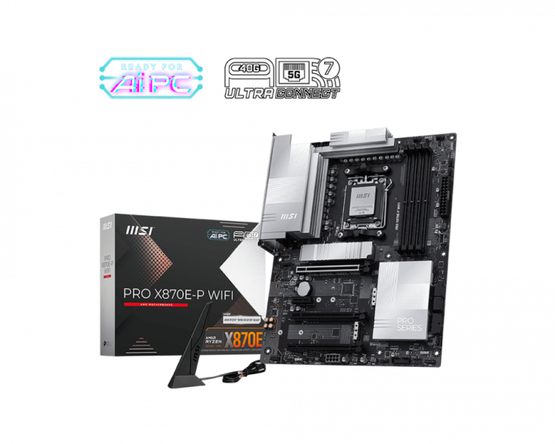 MSI PRO X870E-P WIFI | Processor family AMD | Processor socket AM5 | DDR5 UDIMM | Supported hard disk drive interfaces SATA, M.2 | Number of SATA connectors 4