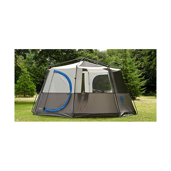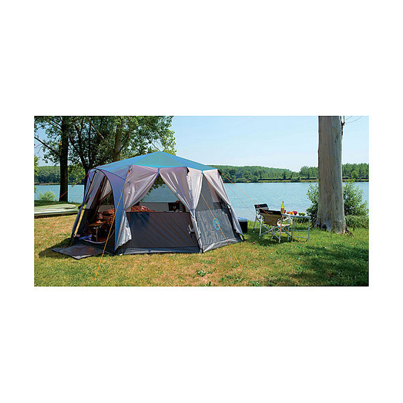 "Coleman Cortes Octagon 8. Number of sleeping places: 8 person(s), Comfort sleeping capacity (max): 8 person(s), Frame type: Hard frame. Type: Dome/Igloo tent, Purpose: Camping, Product colour: Black, Blue, Grey. Ground cloth material: Polyester, Interior material: Polyester, Exterior finish material: Polyester. Package width: 850 mm, Package depth: 300 mm, Package height: 300 mm"\n"The Cortes Octagon 8 provides a full 360° view of your surroundings. Ample living space and the ingenious hinged door gives it a homely feel on the campsite. This spacious tent has a multitude of uses, it can be dressed as a luxury glamping bedroom, a playroom for the kids or a perfect tent for festival gatherings.