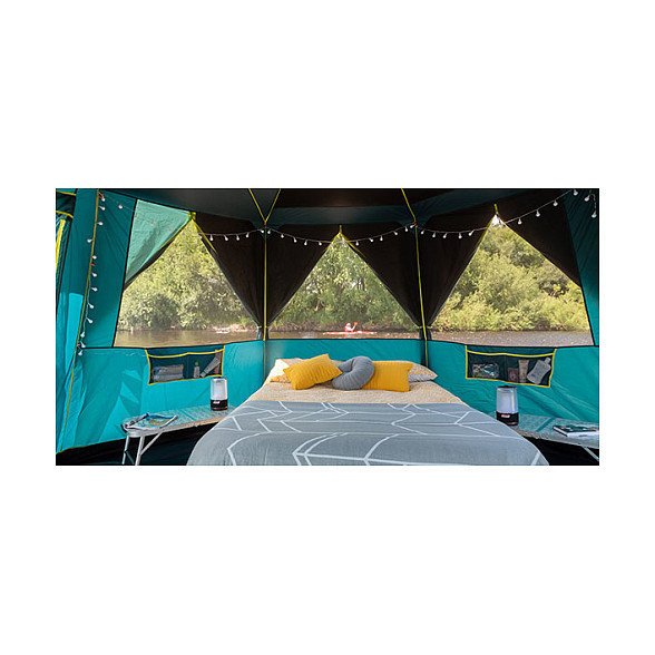 This spacious tent has a multitude of uses, it can be dressed as a luxury glamping bedroom, a playroom for the kids or a perfect tent for festival gatherings. The flysheet can be removed and the Octagon BlackOut transforms into a bug-proof screened room perfect for the garden.
