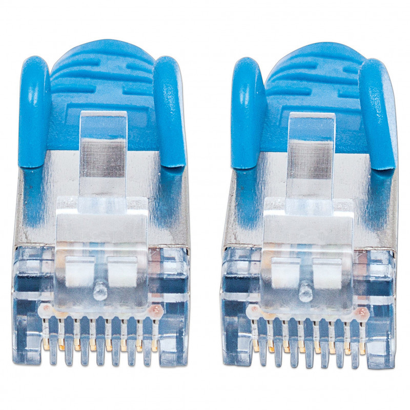 "Intellinet Network Patch Cable, Cat6A, 1.5m, Blue, Copper, S/FTP, LSOH / LSZH, PVC, RJ45, Gold Plated Contacts, Snagless, Booted, Lifetime Warranty. Cable length: 1.5 m, Cable standard: Cat6a, Cable shielding: S/FTP (S-STP), Connector 1: RJ-45, Connector 2: RJ-45, Connector contacts plating: Gold, Data transfer rate: 10000 Mbit/s, Product colour: Blue"\n"10 Gigabit data transmission over twisted pair cable — The next generation of network technology._x000D_
