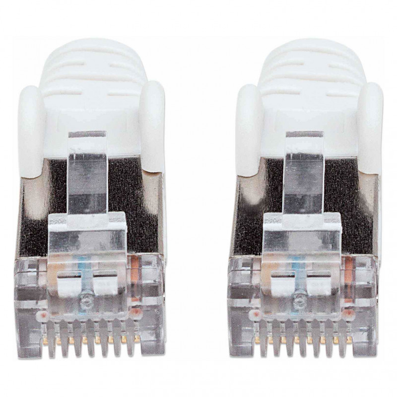 "Intellinet Network Patch Cable, Cat7 Cable/Cat6A Plugs, 0.5m, White, Copper, S/FTP, LSOH / LSZH, PVC, RJ45, Gold Plated Contacts, Snagless, Booted, Lifetime Warranty. Cable length: 0.5 m, Cable standard: Cat7, Cable shielding: S/FTP (S-STP), Connector 1: RJ-45, Connector 2: RJ-45, Connector contacts plating: Gold, Data transfer rate: 10000 Mbit/s, Product colour: White"\n"Cat7 raw cable with Cat6a modular plugs gives the best performance for your network infrastructure.Why Cat6a modular plugs?As there is no official, agreed-upon standard for the Cat7 plug, Intellinet Network Solutions uses the highest official TIA/EIA-approved components to give you the best specification available."