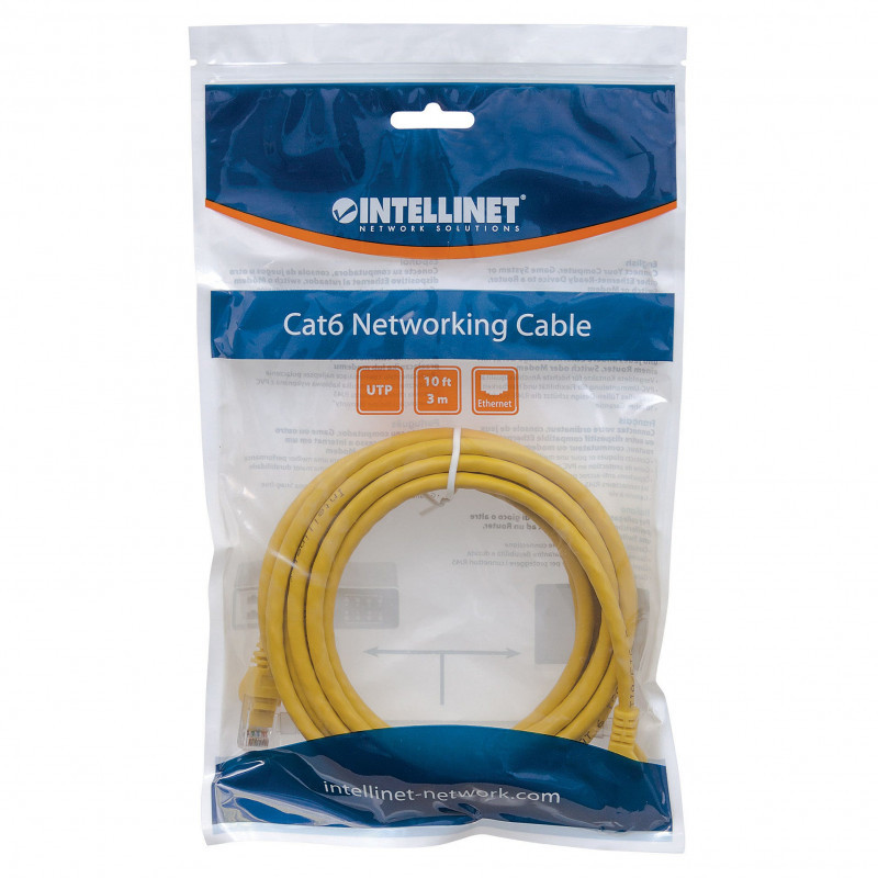 "Intellinet Network Patch Cable, Cat6, 2m, Yellow, CCA, U/UTP, PVC, RJ45, Gold Plated Contacts, Snagless, Booted, Lifetime Warranty. Cable length: 2 m, Cable standard: Cat6, Cable shielding: U/UTP (UTP), Connector 1: RJ-45, Connector 2: RJ-45, Connector contacts plating: Gold, Product colour: Yellow"\n"Trusted connections for your network_x000D_