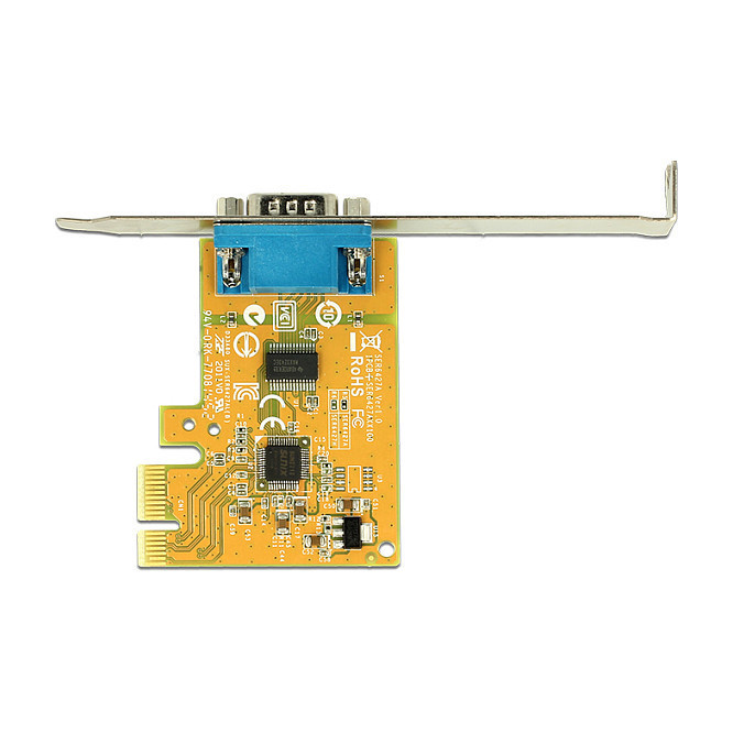 "DeLOCK 89444. Host interface: PCIe, Output interface: Serial, Expansion card standard: PCIe 2.0. Chipset: SUN2212, Data transfer rate (max): 0.0001152 Gbit/s, FIFO (First In, First Out): 128 B. Windows operating systems supported: Windows 10 Education, Windows 10 Education x64, Windows 10 Enterprise, Windows 10 Enterprise x64,.... Package type: Box"\n"The Delock PCI Express card expands a PC by one external serial port. Different devices such as scanner, printer, mouse etc. can be connected to this card. By using the included low profile bracket, the PCI Express card can be also installed into a Mini-PC."