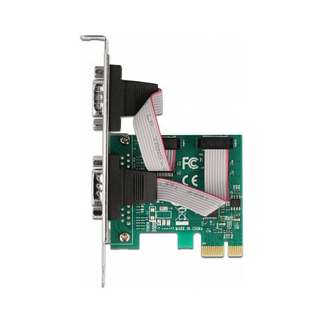"DeLOCK PCI Express x1 Card to 2 x Serial RS-232. Host interface: PCIe, Output interface: RS-232, Expansion card standard: PCIe 2.0. Purpose: PC, Country of origin: China. Data transfer rate (max): 0.0009216 Gbit/s, FIFO (First In, First Out): 256 B, Data bits: 5, 6, 7, 8, 9. Windows operating systems supported: Windows 10, Windows 8, Windows 8.1. Quantity per pack: 1 pc(s), Package type: Box"\n"The PCI Express card by Delock expands a PC by two external serial ports. Different devices such as scanner, protocol converter, IoT devices etc. can be connected to this card.