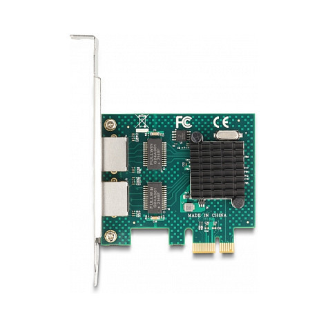 "DeLOCK PCI Express x1 Card to 2 x RJ45 Gigabit LAN BCM. Host interface: PCIe, Output interface: RJ-45, Host interface gender: Female. Product colour: Grey, Purpose: PC, LED indicators: Activity, Link. Data transfer rate (max): 4 Gbit/s. Windows operating systems supported: Windows 10, Windows 10 x64, Windows 11. Quantity per pack: 1 pc(s), Package type: Box"\n"The PCI Express card by Delock offers two network ports with a data transfer rate up to 1000 Mbps.