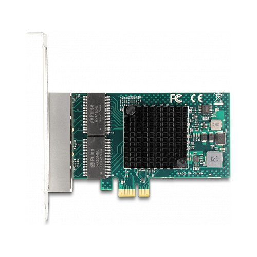 "DeLOCK PCI Express x1 Card to 4 x RJ45 Gigabit LAN BCM. Host interface: PCIe, Output interface: RJ-45, Host interface gender: Female. Product colour: Grey, Purpose: PC, LED indicators: Activity, Link. Data transfer rate (max): 4 Gbit/s. Windows operating systems supported: Windows 10, Windows 10 x64, Windows 11. Quantity per pack: 1 pc(s), Package type: Box"\n"The PCI Express card by Delock offers four network ports with a data transfer rate up to 1000 Mbps.