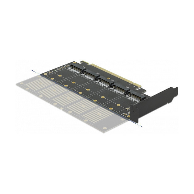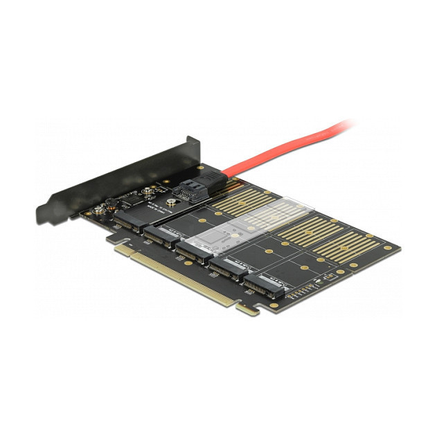 "DeLOCK PCI Express x16 Card to 5 x internal M.2 Key B / SATA. Host interface: PCIe, Output interface: M.2, Expansion card standard: PCIe 3.0. Maximum cable length: 0.5 m, Country of origin: China. Windows operating systems supported: Windows 10, Windows 7, Windows 8.1. Cables included: SATA, Package type: Box"\n"This PCI Express card by Delock expands the PC by five M.2 slots. Up to five M.2 SATA modules can be connected in format 2280, 2260, 2242, 2230 with this card.
