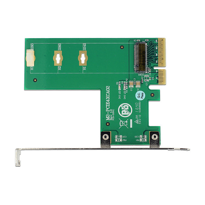 "DeLOCK 89561. Host interface: PCIe, Output interface: M.2, Expansion card standard: PCIe 3.0. Product colour: Green, White. Data transfer rate (max): 39 Gbit/s. Package type: Box"\n"The Delock PCI Express card expands a PC by one M.2 slot. An M.2 SSD in format 2280, 2260, 2242 and 2230 can be connected."