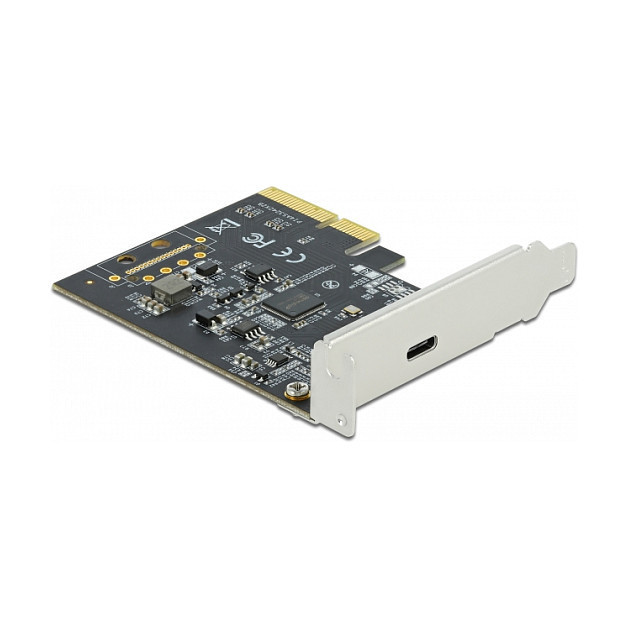 "DeLOCK PCI Express x4 Card to 1 x external SuperSpeed USB 20 Gbps (USB 3.2 Gen 2x2) USB Type-C™ female. Host interface: PCIe, Output interface: PCIe, USB 3.2 Gen 2 (3.1 Gen 2), Expansion card form factor: Low-profile. Product colour: Stainless steel, Purpose: PC. Data transfer rate (max): 20 Gbit/s. Power consumption (typical): 12 W, Output voltage: 5 V, Output current: 2.4 A. Windows operating systems supported: Windows 10, Windows 10 x64, Windows 8.1, Windows 8.1 x64, Linux operating systems supported: Kernel 3.3"\n"Description
