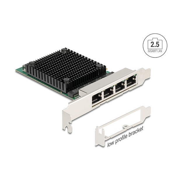 "DeLOCK PCI Express x4 Network Card 2.5 Gigabit LAN 4 x RJ45 RTL8125. Internal. Connectivity technology: Wired, Host interface: PCI Express, Interface: Ethernet. Maximum data transfer rate: 2500 Mbit/s. Product colour: Black, Green, Stainless steel"\n"The PCI Express card by Delock offers four network ports with a data transfer rate up to 2500 Mbps.