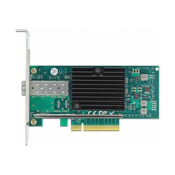"DeLOCK PCI Express x8 Card 1 x SFP+ 10 Gigabit LAN i82599. Internal. Connectivity technology: Wired, Host interface: PCI Express, Interface: Fiber. Maximum data transfer rate: 10000 Mbit/s. Product colour: Black, Green"\n"This PCI Express network card by Delock provides a connection for an SFP+ module with a transfer rate of 10 Gbps. The SFP slot accepts an optional 10 Gigabit SFP+ module by Delock to connect a PC via a fiber optic cable to the network."