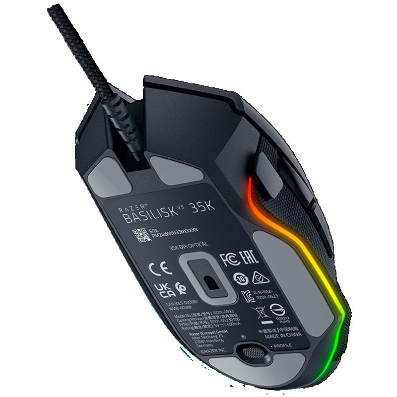 Razer Basilisk V3 35K Gaming Mouse, Black, Focus Pro 35K Optical Sensor Gen-2, Optical Mouse Switches Gen-3, Razer™ Speedflex Cable, 4-Way Razer™ HyperScroll Tilt Wheel, 35K DPI