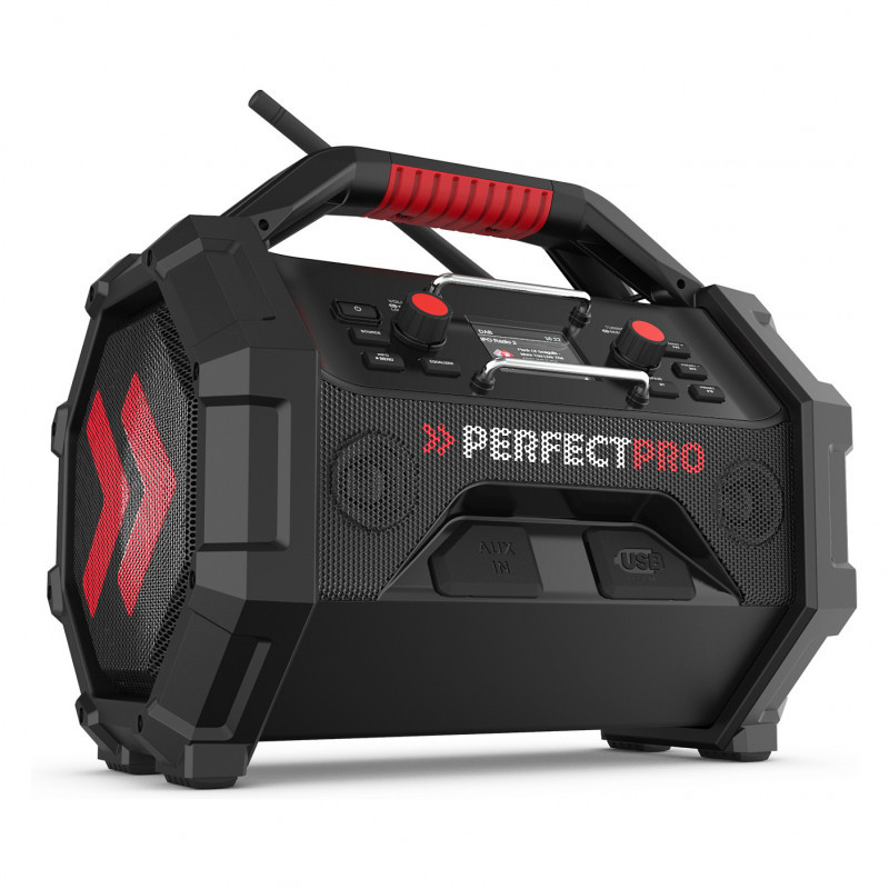 "Perfectpro ROCKTAGON. Radio type: Worksite, Tuner type: Digital, Supported radio bands: DAB+, FM. RMS rated power: 30 W. Impedance: 8 Ω. USB connector type: USB Type-A. Product colour: Black, Red, Protection features: Dirt resistant, Dust resistant, Rain proof, Shock resistant, International Protection (IP) code: IP65"\n