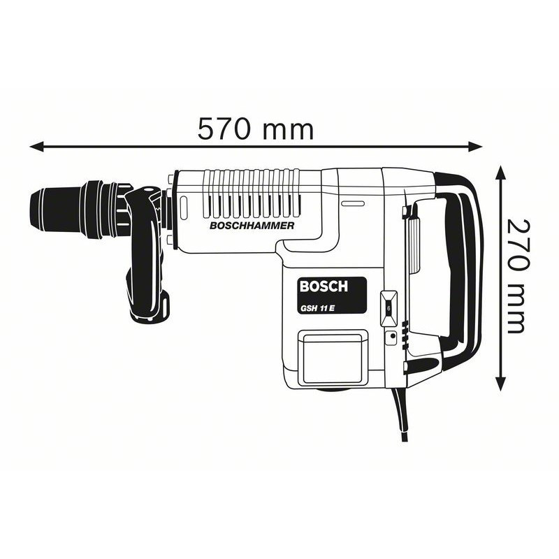 "Bosch 0 611 316 703. Impact energy (max): 16.8 J, Impact rate: 1890 bpm. Power source: AC, Input power: 1500 W. Depth: 570 mm, Height: 270 mm. Weight (including battery): 10.1 kg"\n"Service display