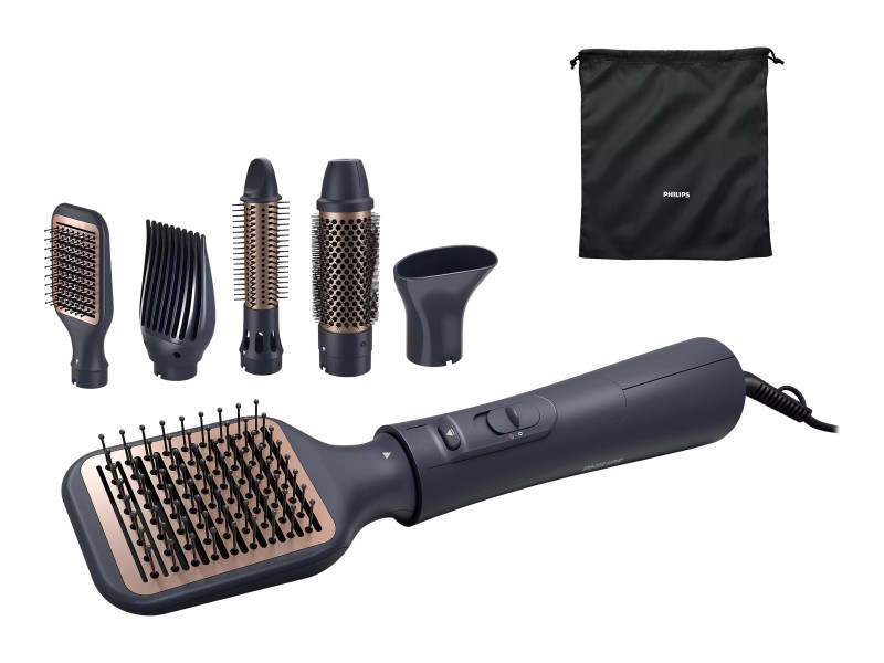 Tip (Concentrated air flow), Brush with retractable bristles (For defined waves), Wide straightening brush (Natural looking, straight hair), Cleaning device (Fluffy hair at the roots), 38 mm ThermoBrush (For smooth curls and waves) |