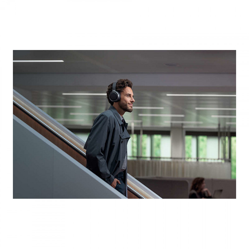 Lightweight aluminium and responsibly sourced Muirhead leather ensure that these wireless headphones feel as premium as the sound. The aluminium of the ear-cup rings is in matte dark satin, with embossed Philips Fidelio branding. The music pauses automatically when you take the headphones off.