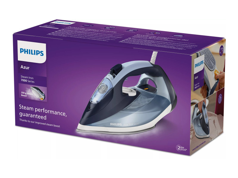 Philips Steam Iron | DST7020/20 | Steam Iron | 2800 W | Water tank capacity 300 ml | Continuous steam 50 g/min | Steam boost performance 250 g/min | Blue