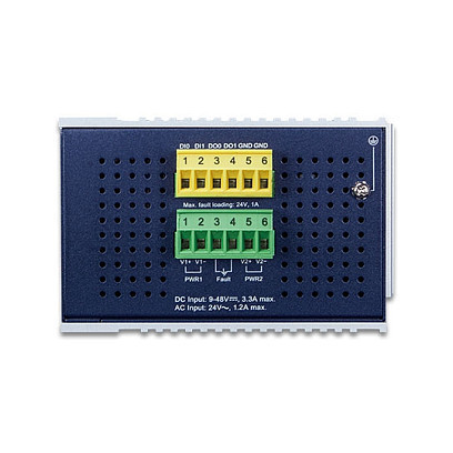 The IGS-6325-16T4S supports Digital Input and Digital Output on its front panel. This external alarm enables users to use Digital Input to detect and log external device status (such as door intrusion detector), and send event alarm to the administrators. The Digital Output could be used to alarm the administrators if the IGS-6325-16T4S port shows link down, link up or power failure.