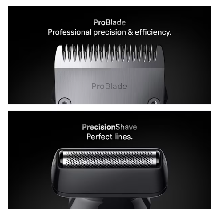 Sliding Beard Comb 3-11 mm, Sliding Hair Comb 13-21 mm, Sensitive comb (Body), Fixed combs with 1 mm & 2 mm, Eyebrow Comb, Detail Comb |