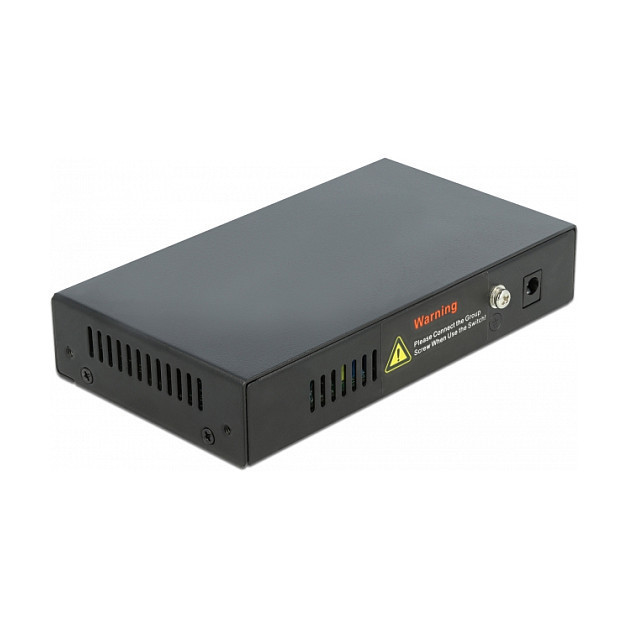 "DeLOCK Gigabit Ethernet Switch 4 Port PoE + 1 SFP. Basic switching RJ-45 Ethernet ports type: Gigabit Ethernet (10/100/1000), Basic switching RJ-45 Ethernet ports quantity: 4. Networking standards: IEEE 802.3at. Power connector: DC-in jack. Power over Ethernet (PoE)"\n"This Gigabit Ethernet Switch by Delock can be used to connect different network components. The four RJ45 ports support Power over Ethernet according to IEEE802.3af / 802.3at, so they can supply power to PoE-enabled devices, such as an IP camera or a PoE splitter via the network cable.