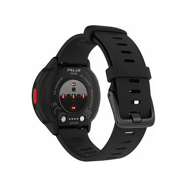 "Polar Pacer. Display diagonal: 3.05 cm (1.2""), Display technology: MIP, Display resolution: 240 x 240 pixels. Processor frequency: 192 MHz. GPS (satellite). Battery capacity: 265 mAh. Weight: 40 g. Waterproof up to: 50 m, Band material: Silicone, Band colour: Black, Band size: S/L"\n"GPS Running Watch
