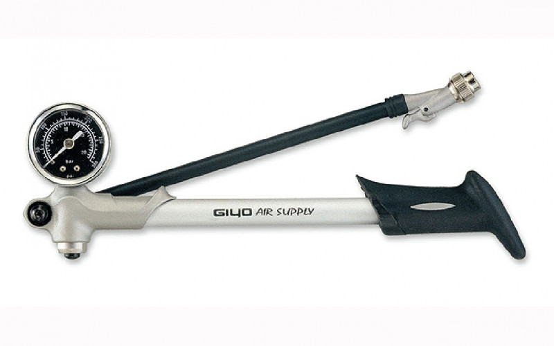 120 psi-8 atm, 27.5 cm, manometras, laikiklis prie rėmo, universalus antgalis, aliuminė