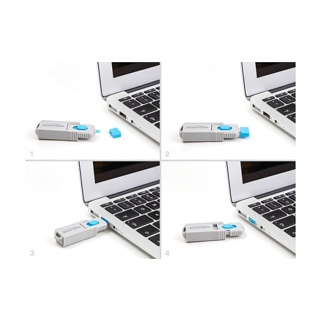 "DeLOCK 10 Port Blocker for USB Type-A female port. Product type: Port blocker, Compatible ports/slots: USB Type-A, Product colour: Blue"\n"This port blocker set by Delock is an accessory for 20923. A total of 10 USB Type-A ports can be blocked with the set. Access by cables or USB sticks to the port are then no longer possible.