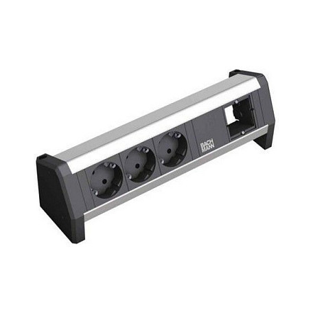 "Bachmann 3x Schuko 1x GST18. AC outlet types: Type F, Housing material: Aluminium, Plastic, Product colour: Black, Silver. AC outlets quantity: 3 AC outlet(s). AC input voltage: 230 V, Power consumption: 16000 mA"\n"Plug connections as standard