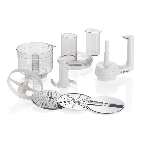 Mixing blade, medium grating disc, reversible shredding disc, reversible slicing disc |
