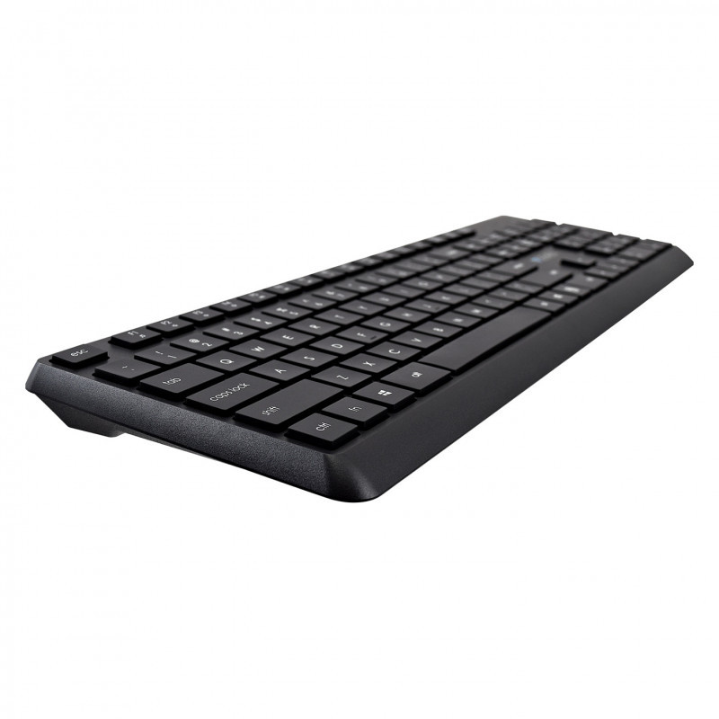 "V7 CKW350US Wireless Keyboard and Mouse Combo - US Layout. Keyboard form factor: Full-size (100%). Keyboard style: Straight. Connectivity technology: Wireless, Device interface: RF Wireless, Keyboard layout: QWERTY, Keyboard number of keys: 106, Recommended usage: Universal. Product colour: Black. Mouse included"\n"Introducing our CKW350 Wireless Keyboard and Mouse Combo, a perfect pairing for an enhanced computing experience. The keyboard features a low profile design for efficient and comfortable typing, with responsive keys that ensure a smooth and precise input. With a 2.4Ghz wireless design, it’s built for productivity right out of the box. The accompanying Wireless mouse is designed for optimal comfort during extended use, providing precise cursor control and a quiet click to minimize office noise. This combo is ideal for both work and play, offering reliability and convenience. Upgrade your setup with this sleek and functional Wireless Keyboard and Mouse Combo, designed to meet the demands of modern computing.