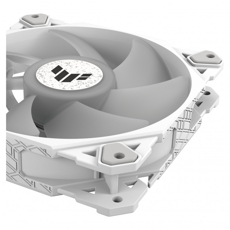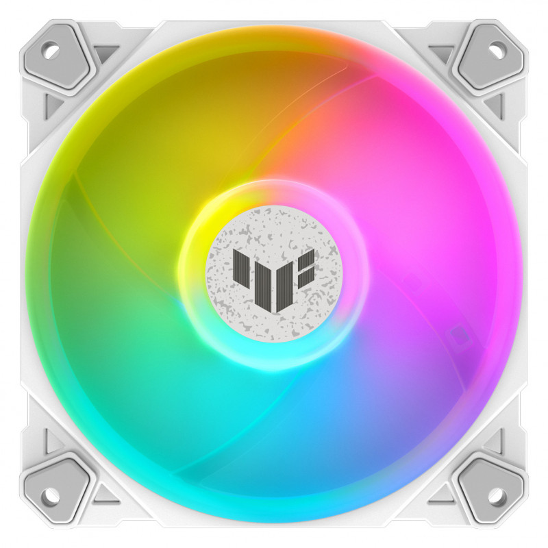 "ASUS TUF GAMING TF120 ARGB WHITE EDITION 3IN1. Type: Air cooler, Fan diameter: 12 cm, Rotational speed (min): 250 RPM, Rotational speed (max): 1900 RPM. Width: 120 mm, Depth: 120 mm, Height: 25 mm. Product colour: White"\n"LIGHTING THE WAY