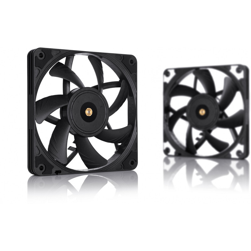 "Noctua NF-A12X15 PWM CH.BK.S. Type: Fan, Fan diameter: 12 cm, Number of speeds: 2, Rotational speed (min): 450 RPM, Rotational speed (max): 1850 RPM, Airflow: 94.2 m³/h, Maximum air pressure: 1.53 mmH2O, Bearing type: Self-Stabilising Oil-pressure Bearing (SSO). Width: 120 mm, Depth: 120 mm, Height: 15 mm. Product colour: Black"\n"Having received dozens of awards and recommendations from international hardware websites and magazines, the NF-A12x15 has established itself as a default choice when it comes to premium-quality slim 120mm fans. The chromax.black.swap edition combines the NF-A12x15’s signature quiet cooling performance with an attractive all-black design and a bundle of self-adhesive red, white, blue, green, yellow and black anti-vibration pads that allow the colour-customisation of the fan to match individual build colour schemes. Topped off with Noctua’s trusted premium-grade SSO2 bearing, more than 150,000 hours MTTF and 6-year manufacturer’s warranty, the NF-12x15 PWM chromax.black.swap is the perfect choice for all users who value individual, focused build aesthetics just as much as class-leading quality and performance."