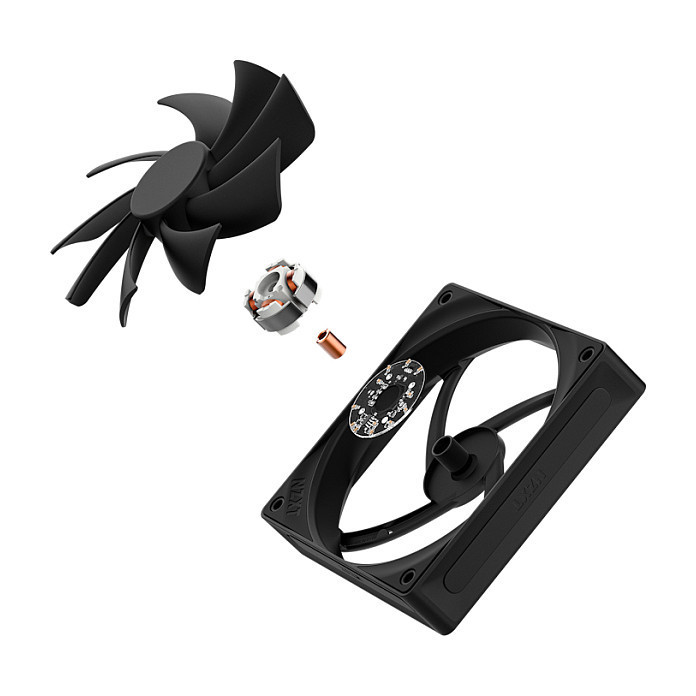 "NZXT RF-Q12SF-B2. Type: Fan, Fan diameter: 12 cm, Rotational speed (min): 500 RPM, Rotational speed (max): 1700 RPM, Airflow: 74.26 m³/h, Bearing type: Fluid Dynamic Bearing (FDB). Width: 120 mm, Depth: 25 mm, Height: 120 mm. Product colour: Black"\n"NZXT Quiet Airflow Fans offer high-performance, low-noise cooling for heat-prone PCs. Optimized blades and a chamfered frame provide powerful concentrated air, while fluid dynamic bearings and PWM control keep things quiet and efficient.