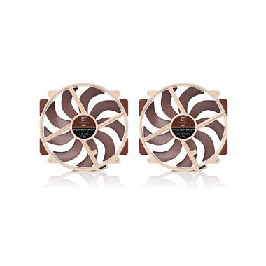 "Noctua NF-A14X25R G2 PWM SX2-PP. Type: Fan, Fan diameter: 14 cm, Rotational speed (max): 1500 RPM, Airflow: 155.6 m³/h, Bearing type: Self-Stabilising Oil-pressure (SSO) bearing. Voltage: 12 V"\n"The NF-A14x25r G2 PWM Sx2-PP is a set of two NF-A14x25r G2 PWM round-frame 140mm fans for push-pull operation on heatsinks such as the NH-D15(S) or NH-U14S. When two fans operate in a push-pull configuration running at almost the same, constant speed, their acoustic interaction can lead to undesirable harmonic phenomena such as intermittent vibrations or periodic humming due to interference, which can be heard as beat frequencies. Therefore, the two NF-A14x25r G2 PWM fans contained in the Sx2-PP set are slightly offset in speed (+/- ~25rpm) in order to avoid such phenomena. This fine-tuning is made possible by the fans’ novel etaPERF™ motor and its NE-FD6 driver IC that achieves extremely precise speed control and, thanks to its SupraTorque™ feature, can leverages extra torque headroom to keep the exact desired speed even when working against significant flow resistance such as on heatsinks. With one fan running ~25rpm slower (PPA) and one ~25rpm faster (PPB), the overall cooling performance can be kept the same while efficiently preventing intermittent vibrations or periodic humming. Since the perception of beat frequencies can vary depending on psychoacoustic preferences, users can easily further optimise acoustics by slowing the PPA fan down a little more through PWM control or the supplied Low-Noise-Adaptor, which will result in an even smoother sound signature due to the increased offset.
