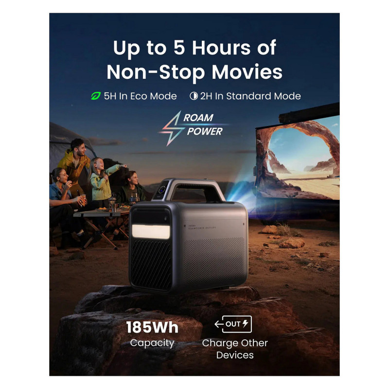 Enjoy 5 Hours of Playtime Anywhere: Our exclusive RoamPower™️ technology; supports a 185Wh capacity, which lets you use Mars 3 as a power bank to charge smart devices, enjoy 5 hours of movies, and listen to your favorite tunes for 15 hours.