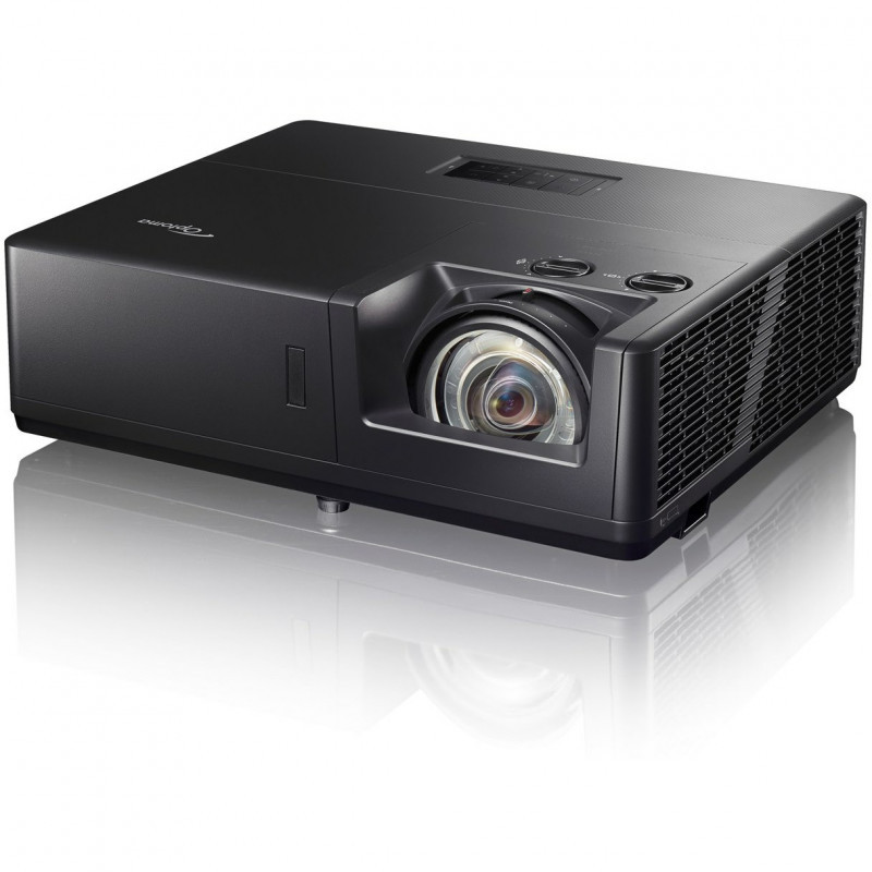 "Optoma ZU607TST. Projector brightness: 6000 ANSI lumens, Projection technology: DLP, Projector native resolution: WUXGA (1920x1200). Light source type: Laser, Service life of light source: 30000 h. Fixed focal length: 8.51 mm, Zoom type: Fixed, Throw ratio: 0.58:1. Supported graphics resolutions: 640 x 480 (VGA), 800 x 600 (SVGA), 1024 x 768 (XGA), 1280 x 1024 (SXGA), 1280 x 768 (WXGA), 1600 x.... Serial interface type: RJ-45, RS-232"\n"High brightness short throw laser projector