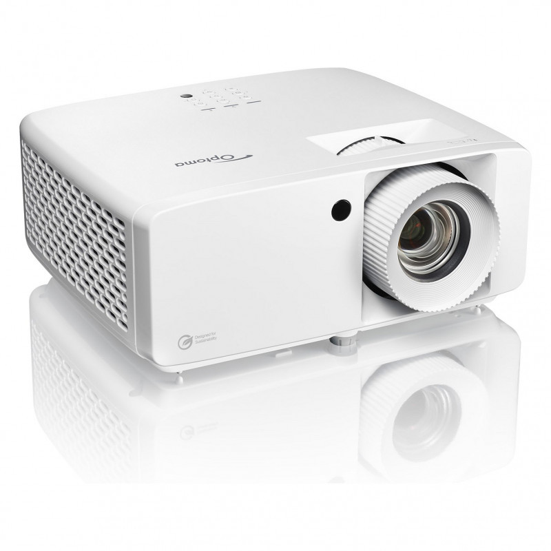 "Optoma UHZ35. Projector brightness: 3500 ANSI lumens, Projection technology: DLP, Projector native resolution: UHD 4K (3840x2160). Light source type: Laser, Service life of light source: 30000 h. Zoom type: Fixed, Throw ratio: 1.4:1 ~ 2.24:1, Offset: 116%. Analog signal format system: NTSC 3.58, NTSC 4.43, NTSC J, NTSC M, PAL 4.43, PAL B, PAL D, PAL G, PAL H, PAL I, PAL M, PAL N,..., Supported graphics resolutions: 640 x 480 (VGA), 800 x 600 (SVGA), 1024 x 768 (XGA), 1280 x 1024 (SXGA), 1280 x 720 (HD 720), 1280..., Supported video modes: 480i, 480p, 576i, 576p, 720p, 1080i, 1080p. Serial interface type: RJ-45, RS-232"\n"Eco-friendly compact high brightness 4K UHD laser projector