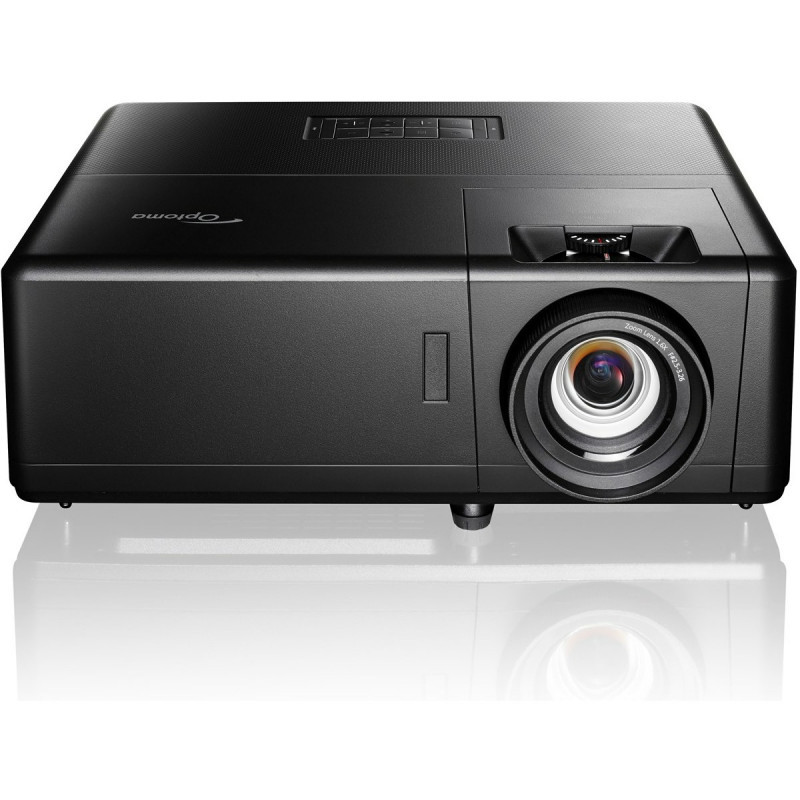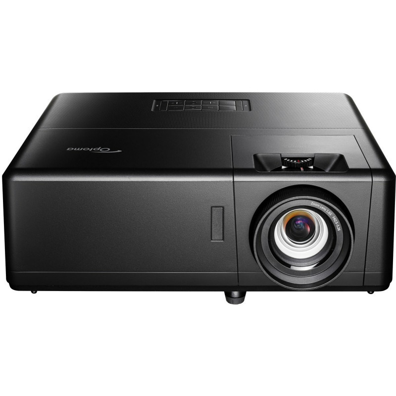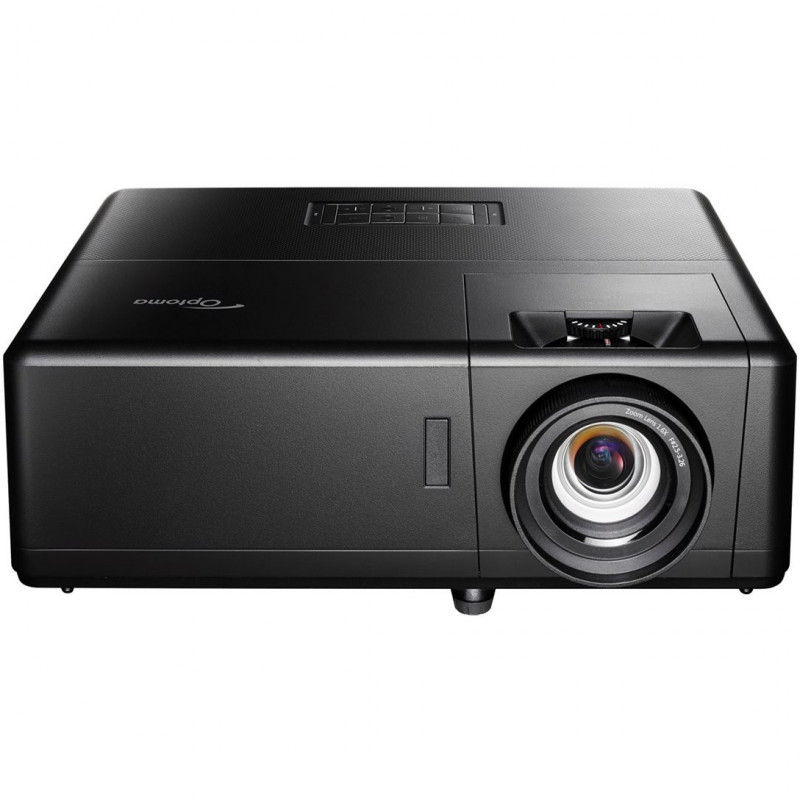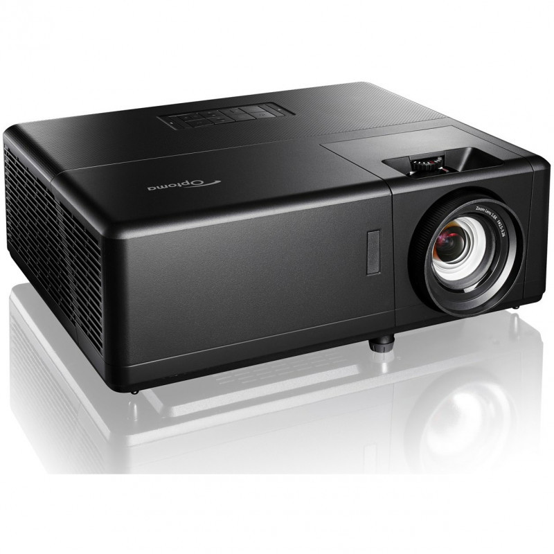 "Optoma UHZ55. Projector brightness: 3000 ANSI lumens, Projection technology: DLP, Projector native resolution: UHD 4K (3840x2160). Light source type: Laser, Service life of light source: 30000 h. Focal length range: 12.81 - 16.74 mm, Zoom type: Manual, Throw ratio: 1.21:1 - 1.59:1. Analog signal format system: NTSC 3.58, NTSC 4.43, NTSC J, NTSC M, PAL 4.43, PAL B, PAL D, PAL G, PAL H, PAL I, PAL M, PAL N,..., Supported graphics resolutions: 640 x 480 (VGA), 800 x 600 (SVGA), 1024 x 768 (XGA), 1280 x 1024 (SXGA), 1280 x 720 (HD 720), 1280..., Supported video modes: 480i, 480p, 576i, 576p, 720p, 1080i, 1080p. Serial interface type: RJ-45, RS-232"\n"Smart 4K UHD laser home entertainment projector