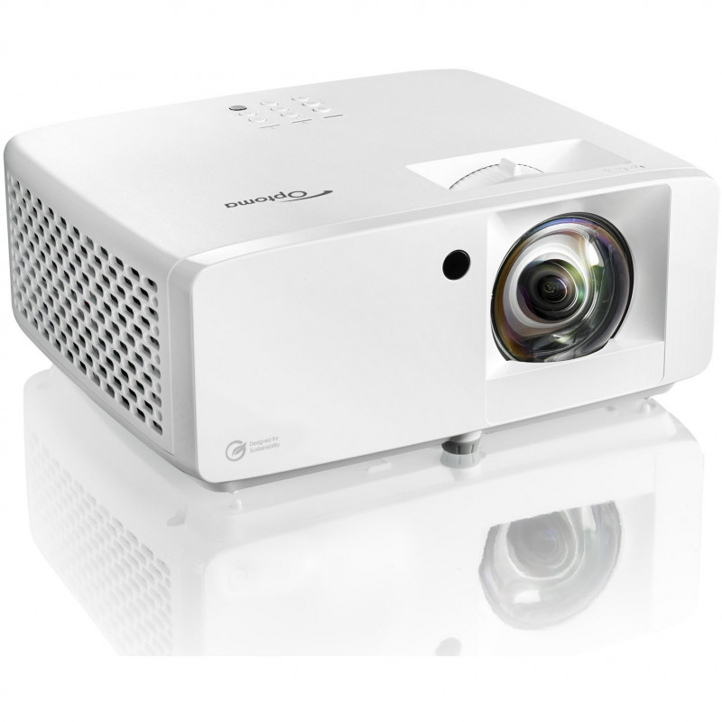 "Optoma ZK430ST. Projector brightness: 3700 ANSI lumens, Projection technology: DLP, Projector native resolution: UHD 4K (3840x2160). Light source type: Laser, Service life of light source: 30000 h. Fixed focal length: 7.51 mm, Zoom type: Fixed, Throw ratio: 0.496:1. Analog signal format system: NTSC 3.58, NTSC 4.43, NTSC J, NTSC M, PAL 4.43, PAL B, PAL D, PAL G, PAL H, PAL I, PAL M, PAL N,..., Supported graphics resolutions: 640 x 480 (VGA), 800 x 600 (SVGA), 1024 x 768 (XGA), 1280 x 1024 (SXGA), 1280 x 720 (HD 720), 1280..., Supported video modes: 480i, 480p, 576i, 576p, 720p, 1080i, 1080p. Serial interface type: RJ-45, RS-232"\n"Eco-friendly compact high brightness 4K UHD laser projector